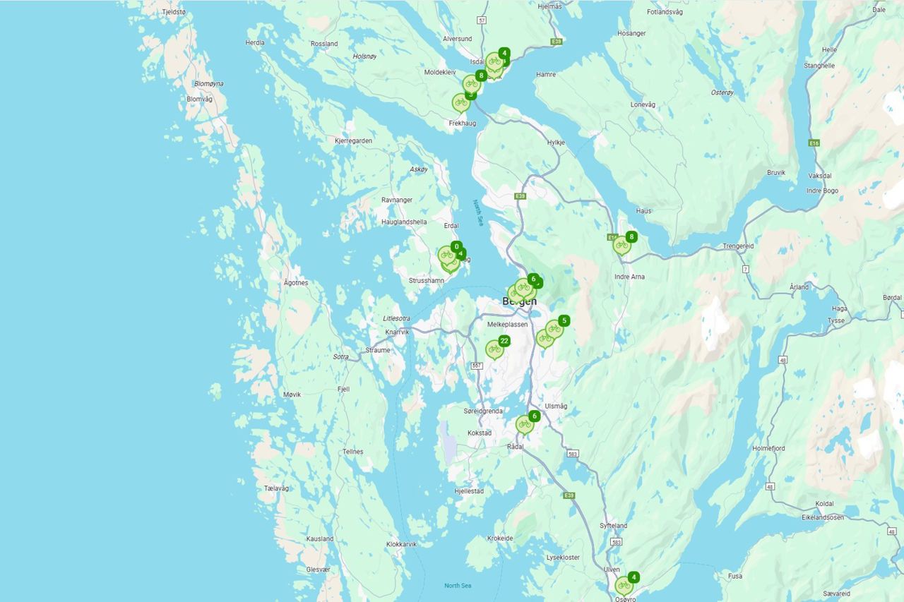 Her får du ei oversikt over sykkelskåp og andre former for trygg sykkelparkering i din kommune.