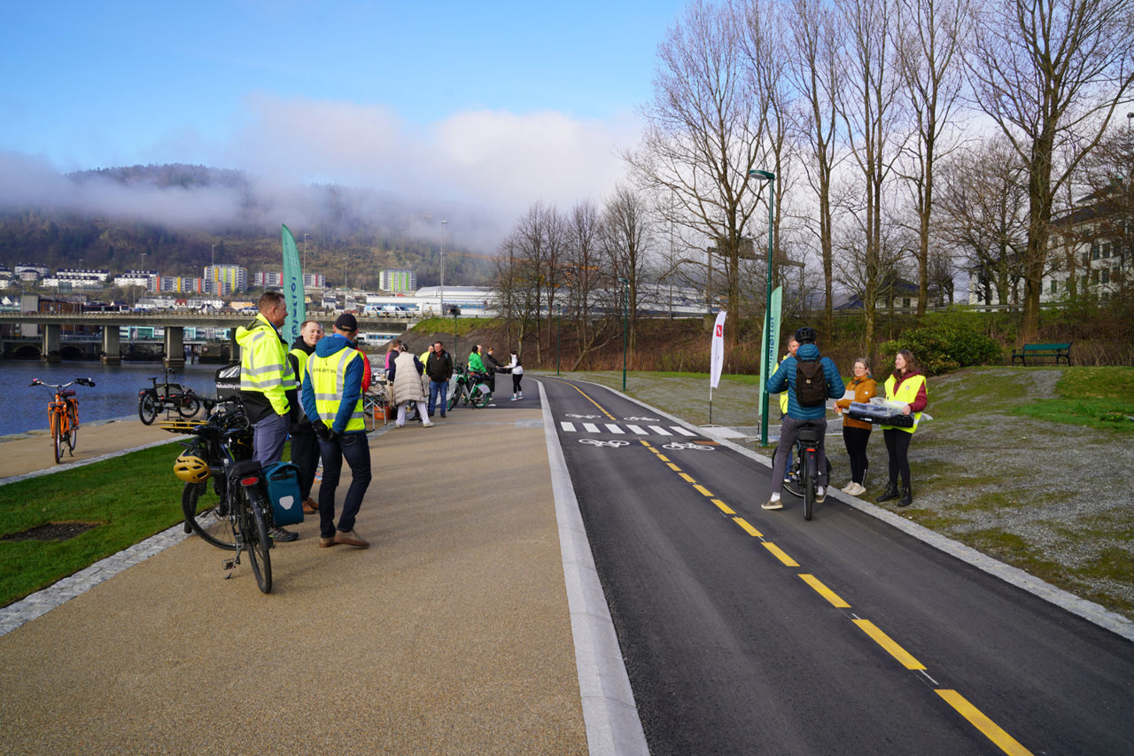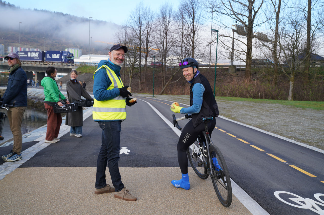 Nå er gang- og sykkelstien oppgradert og asfaltert, og har fått separate felt for å sikre god plass til både de som tar beina og sykkelen fatt. Til sammen er bredden på 6 meter.