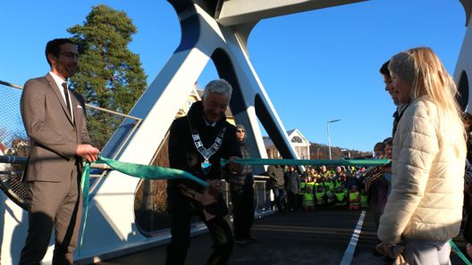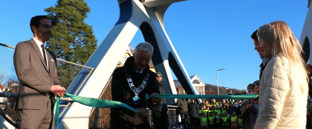 Over 400 elevar var på plass under opninga av gang- og sykkelbrua Paradis bru. Og verdas tyngste og lengste komposittbru vart grundig feira.