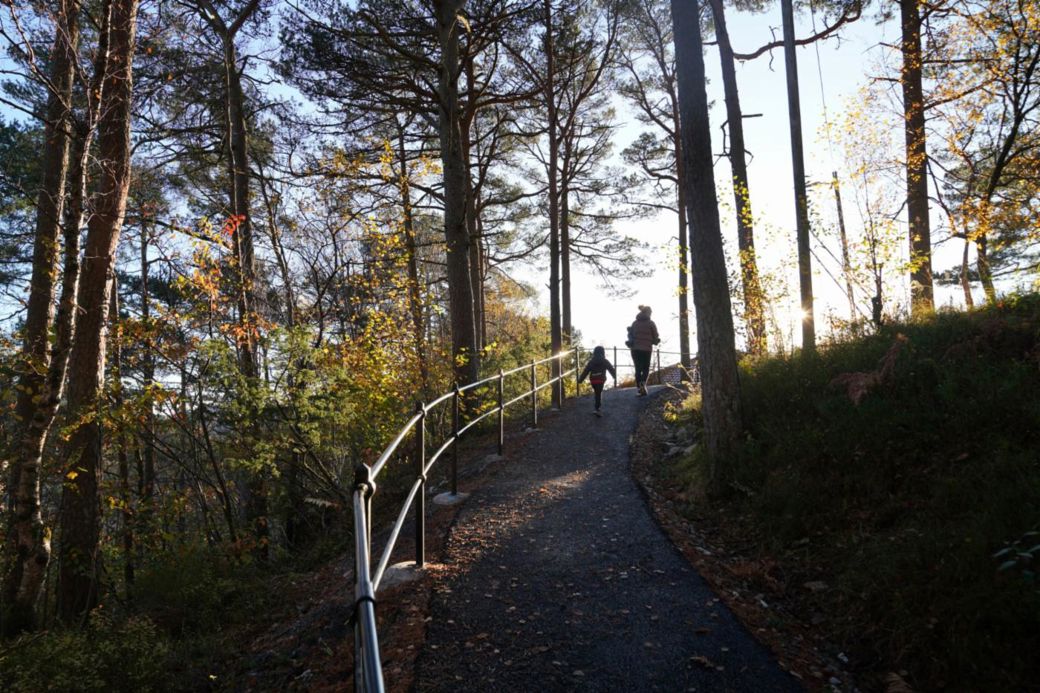 Vi har satt opp rekkverk i bratte partier, slik at det skal være tryggere å gå for alle, og særlig for eldre og når det er glatt. Vi har satt opp nytt rekkverk på bro, og satt opp bedre belysning slik at det er tryggere å gå her i mørket.