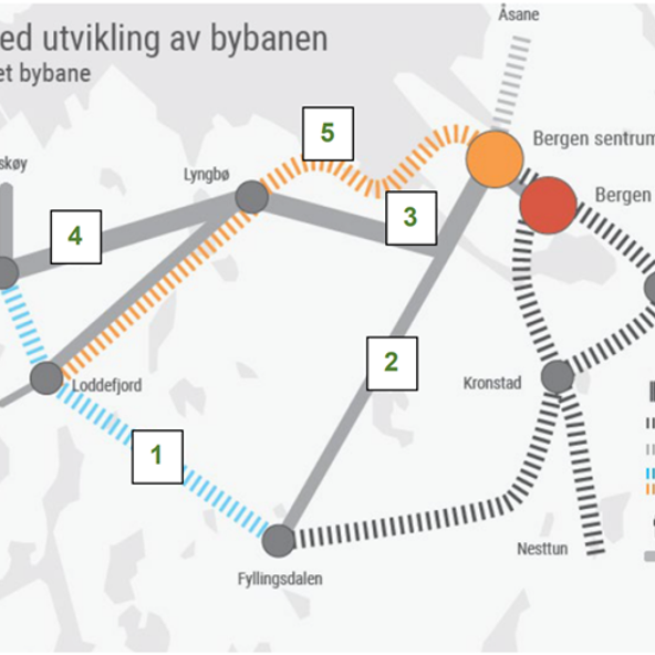 Kollektivplanen skal fastsette overordnede mål og anbefaling om kollektivsystem med bybane i Bergen vest.