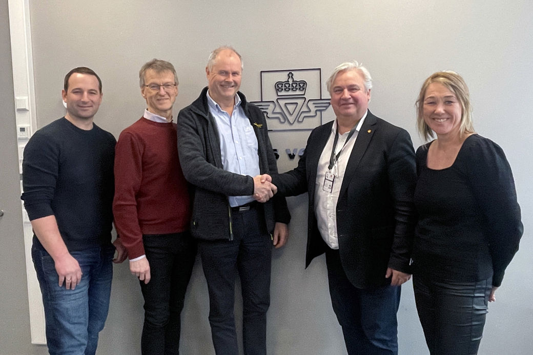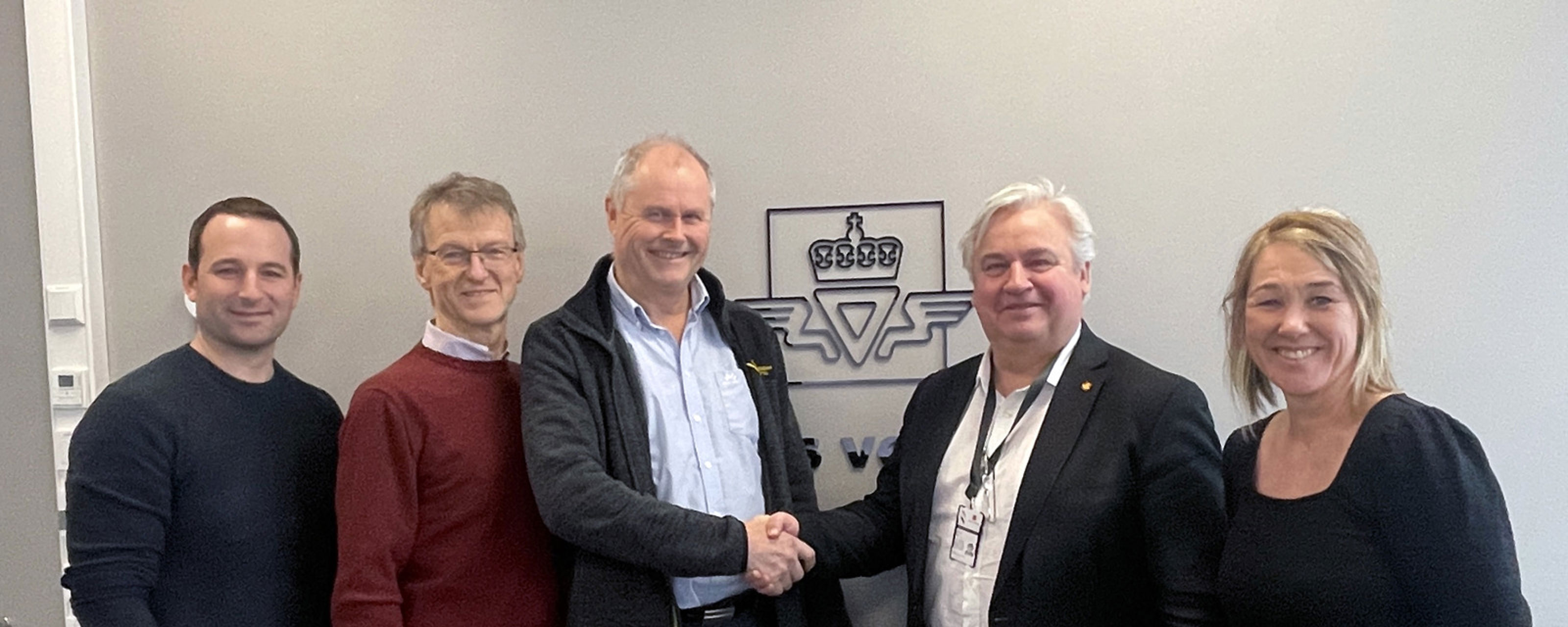 Billedtekst, toppfoto: Klare for bygging av Sykkelstamveg i Bergen. Utbyggingsdirektør Kjell Inge Davik (nr to fra høyre) signerte kontrakten med Bjørn Lindstad fra Vassbakk & Stol (nr tre fra venstre). Prosjektleder i Statens vegvesen Beate Riisnæs var også tilstede under signeringen (lengst til høyre), samt prosjektleder i Vassbakk & Stol, Pål Grinde (nr 1 fra venstre) og prosjektdirektør i Statens vegvesen Kjartan Hove (nr 2 fra venstre).
