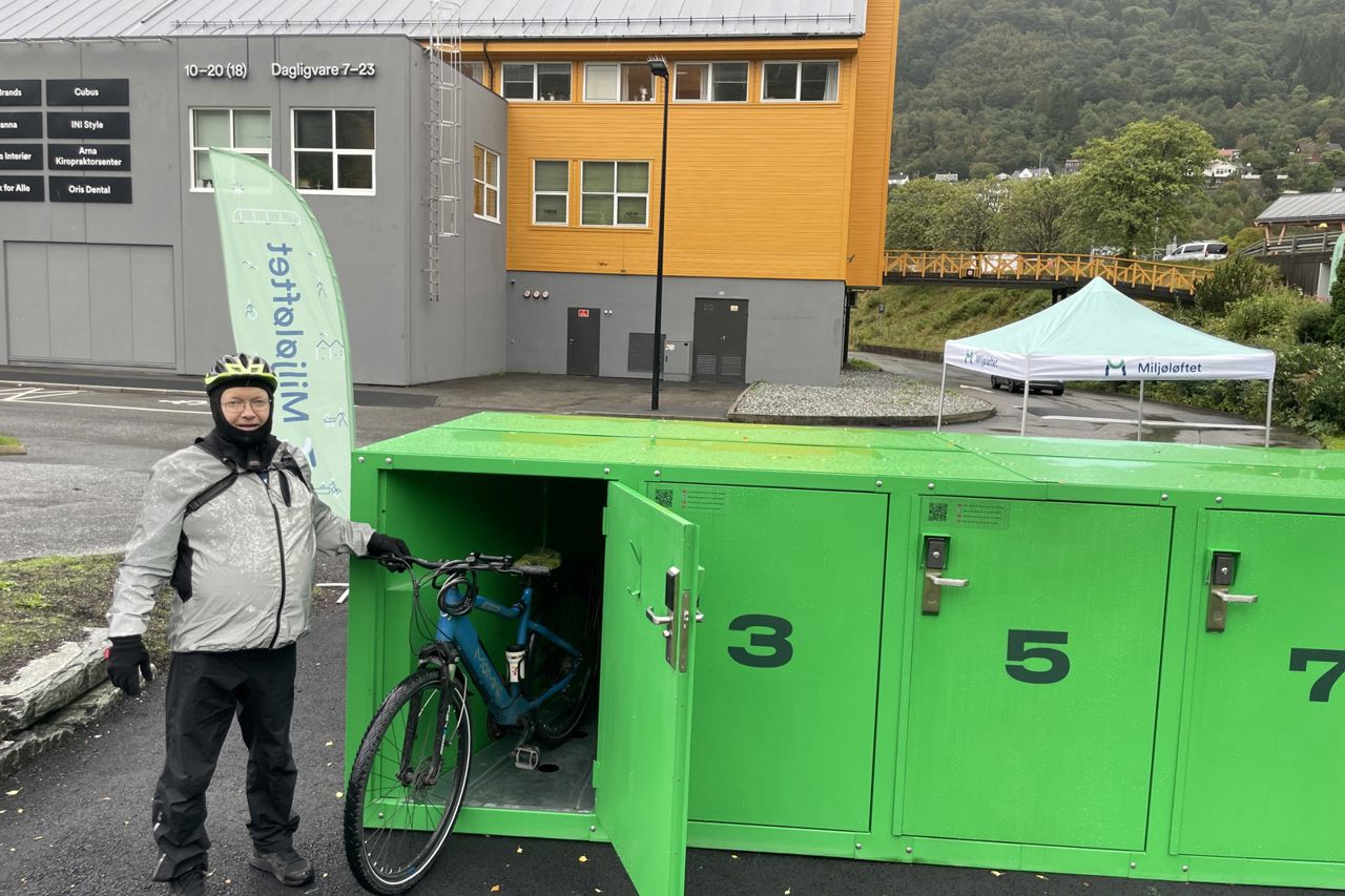 Dei siste åra har det kome sykkelskåp og andre former for trygg sykkelparkering i alle Miljøløftet-kommunane. Og tilbodet er populært. På Bergen busstasjon har sykkelskåpa blitt brukt over 9000 gonger sidan dei kom på plass i 2020.