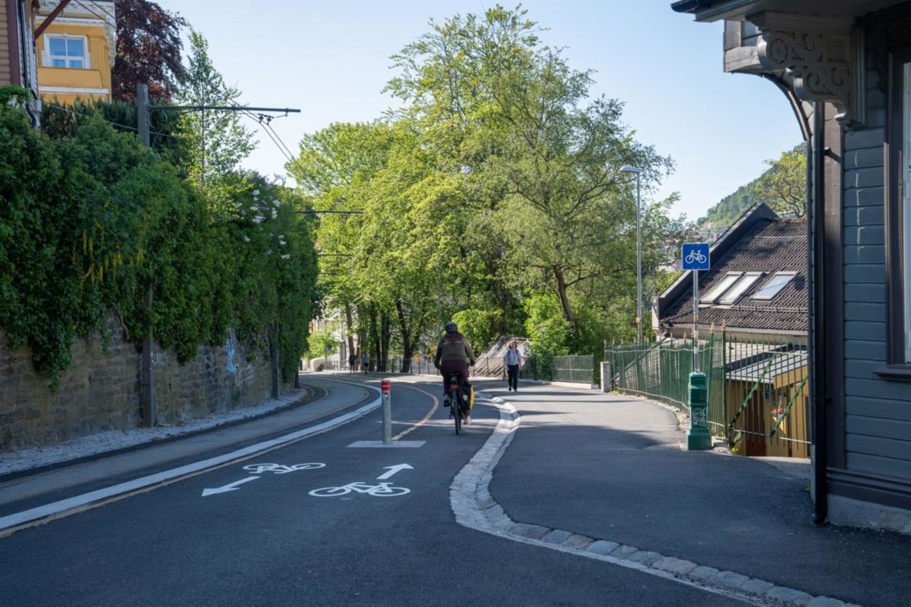 Videre i Olaf Ryes vei og gjennom Harald Hårfagres gate er det sykkelfelt i én retning og delesymboler for syklister (sharrows) i motsatt retning. Tiltaket er en del av Handlingsplan for sykkelsatsing 2021–2024, og er delvis finansiert gjennom Miljøløftet.