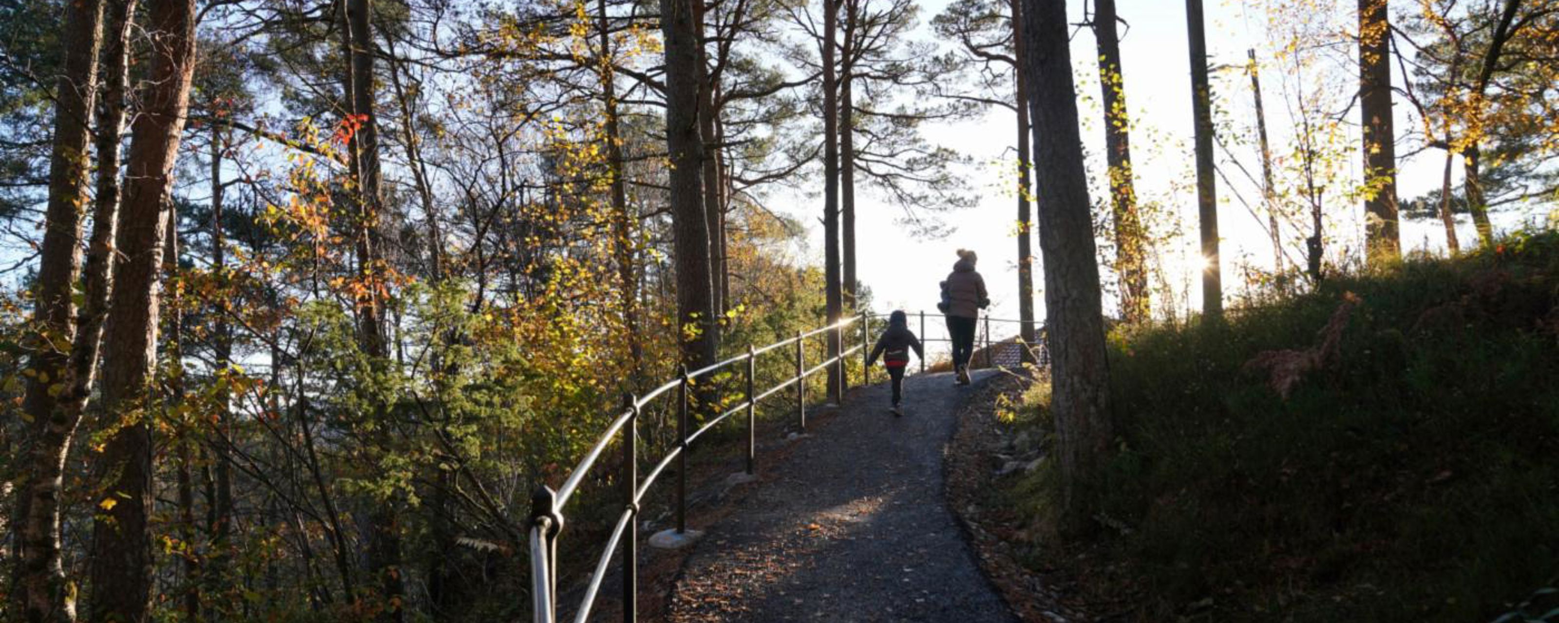 Vi har satt opp rekkverk i bratte partier, slik at det skal være tryggere å gå for alle, og særlig for eldre og når det er glatt. Vi har satt opp nytt rekkverk på bro, og satt opp bedre belysning slik at det er tryggere å gå her i mørket.