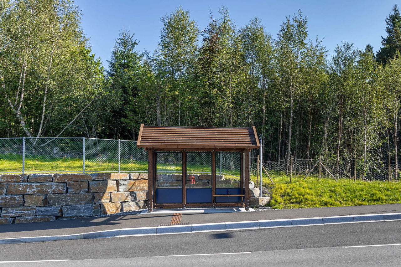 Det er og sett opp busshaldeplass i samband med etablering av fortau.