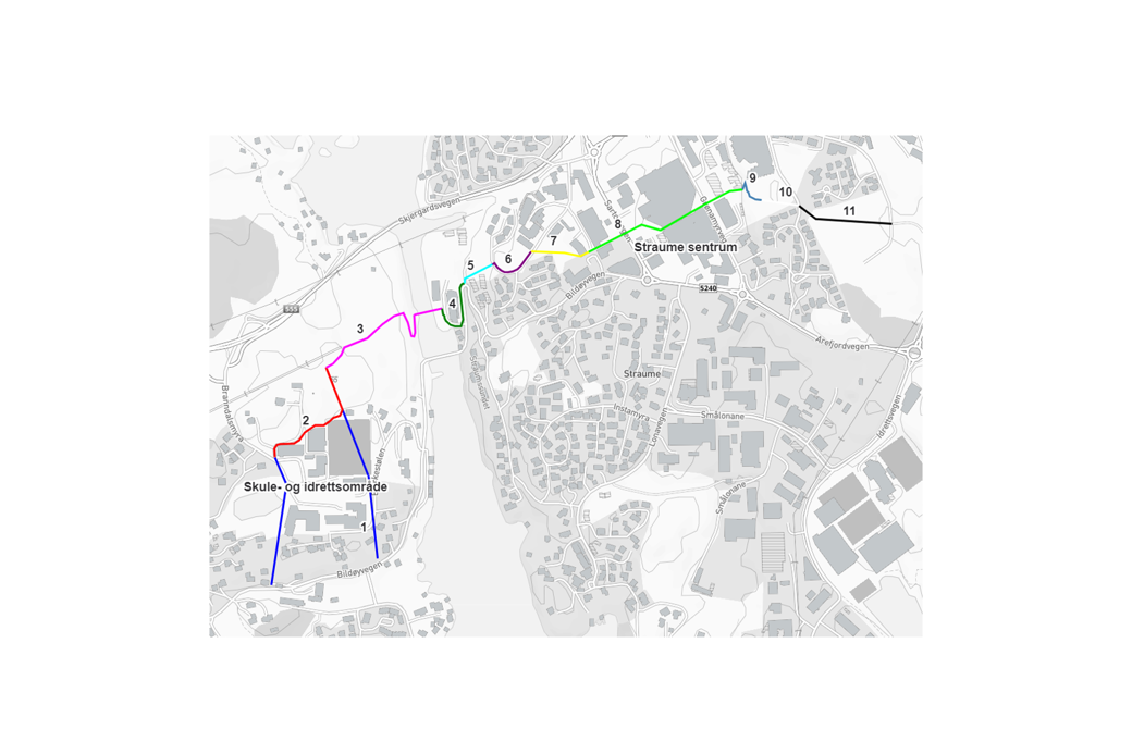 Det skal etablerast ei kopling for mjuke trafikantar mellom Straume sentrum og utdanningsmiljøet på Bildøy.